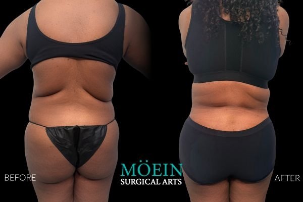 Outstanding tummy tuck with liposculpting before and after in Los Angeles – at 37, she traded a heavy lower abdomen for a smoother, tighter midsection and more balanced curves under the care of Dr. Moein, top cosmetic surgeon.